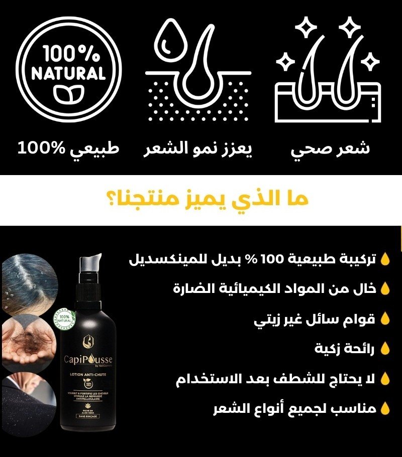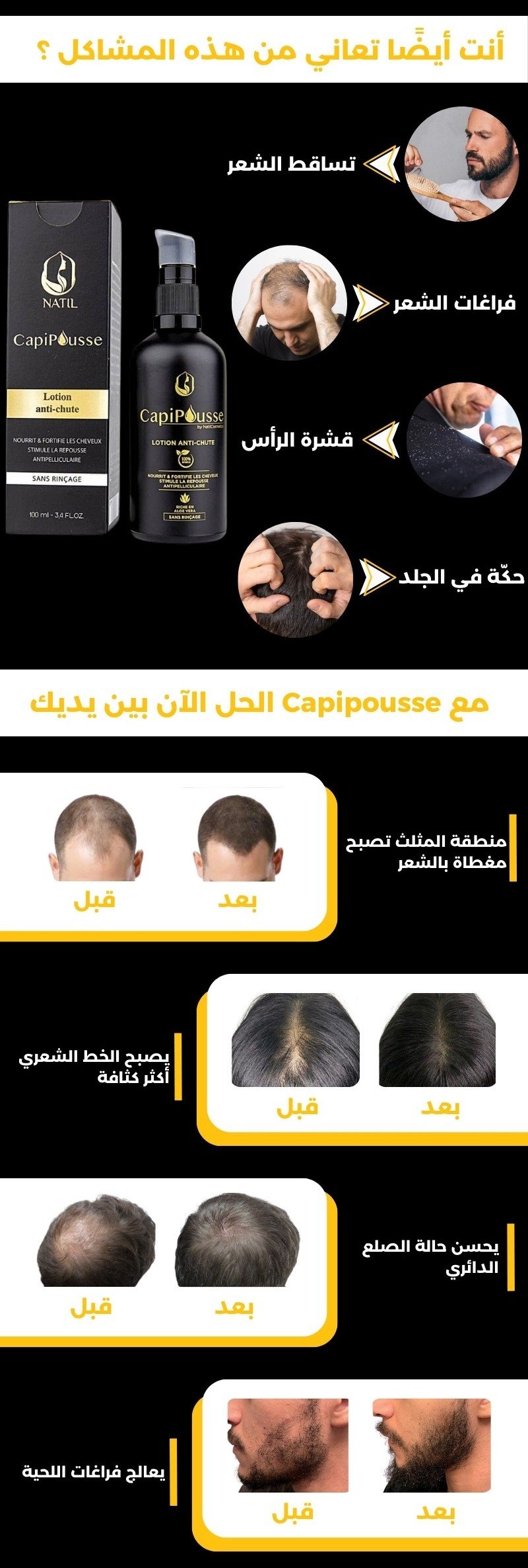 الصراحة قبل ما نستعمل هاد Capipousse، كان شعري كيطيح بزاف... بعد شهر النتيجة كانت واضحة ولات زغبة صحيحة. ناضي الله اعطيكم صحة.